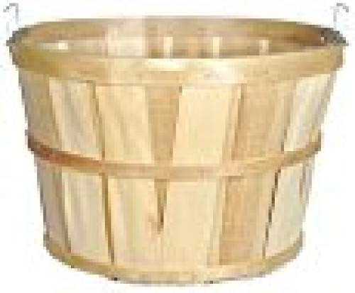 This13" x 9 3/4 round bushel basket features all-wood construction with a natural, unpainted finish for a rustic look and three horizontal bands for extra sturdiness. It works great for holding all sorts of fruits and vegetables, and has two handles attached for easy carrying.
